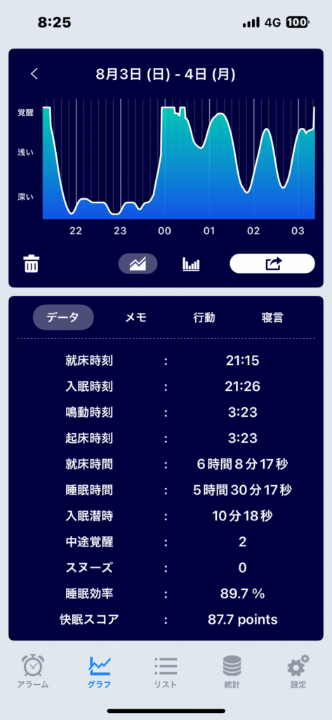 0、1、2、3、4、5、6時に起きて、Tweetするつもりだったけど、4時は寝過ごしました。