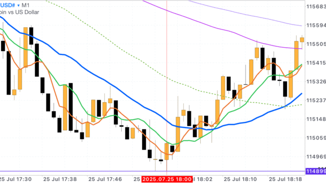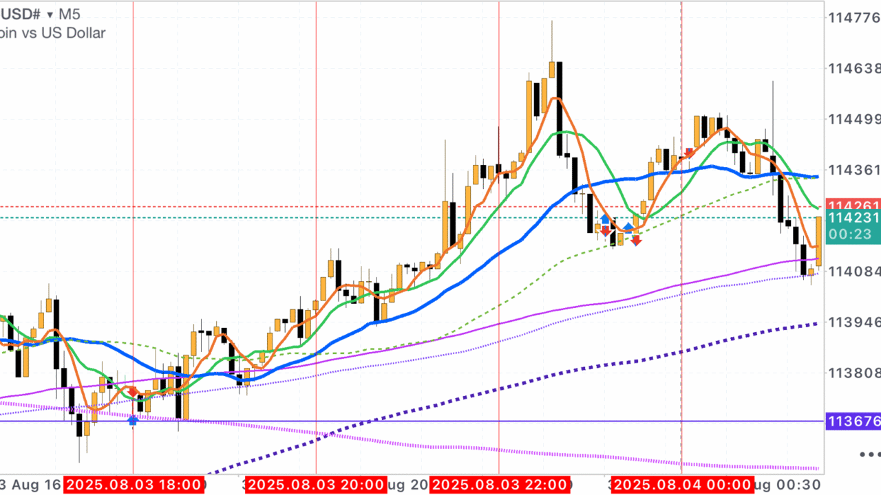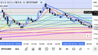 振り返ってみると、やっぱり0時台の動きは重要で、0:30の113,650を底値に、無傷で114,700まで1,000ドル上がったことがわかります。重点として記憶しておきます。