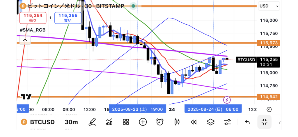 移動平均線で見ても下降トレンドの中の調整の上げとは思うけど、30分足で綺麗なシグナルが出ているのは気づかなかった。