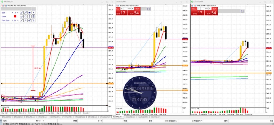見逃さないように、ちゃんと、押し目買い、戻り売りの、時間区切り、時限反転を狙って入り、木曜のCPIまでに、合計で2ロット、入れるように、注意して稼ぎます。