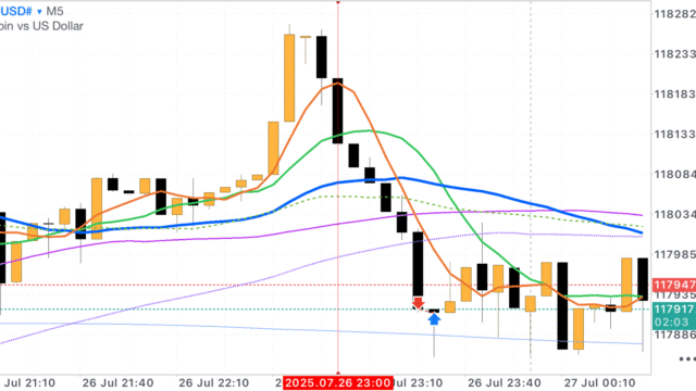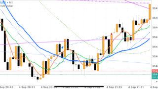 MAの束の上に出るか下に出るかで、向きが変わる。昨日はMAの束を中心に、2回は往復して、エントリーもせずに見ているのが疲れた。指標前に、しくじるわけに行かない。