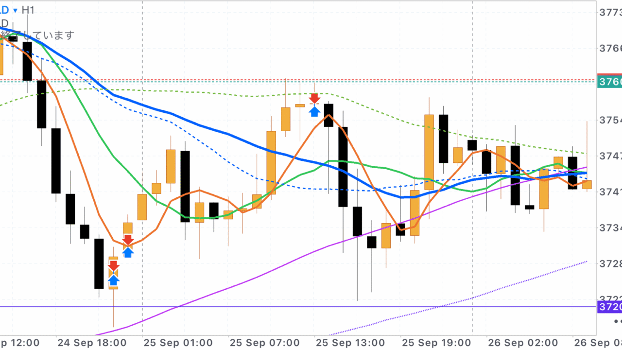 そんなことをしているうちに、1分足、3分足、5分足の反転が起きて、全戻しする。