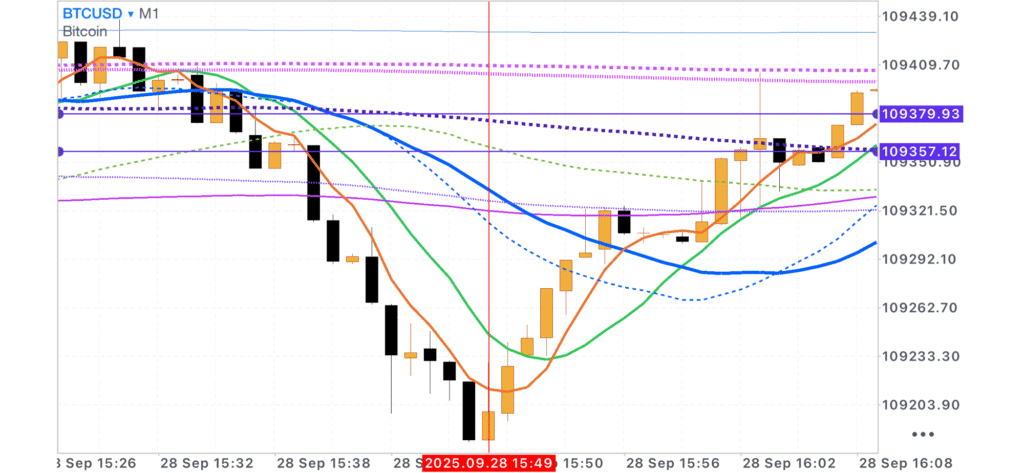 昨日の夜21:49、下落が止まるのを待ってロングを打つ準備をしていた。