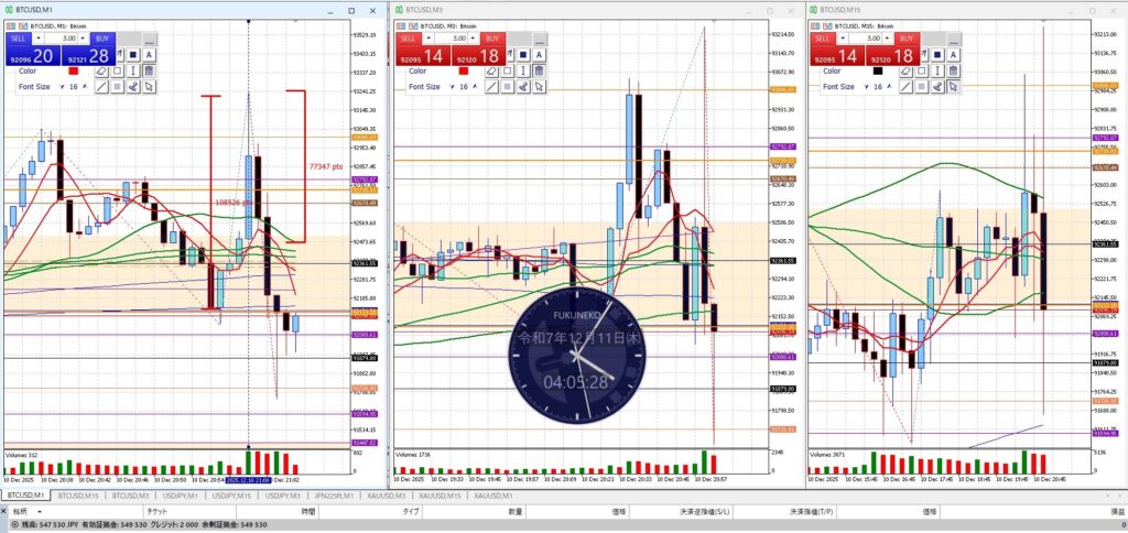 12月8・9・10日(月・火・水)4,000ドルの上昇のチャンスに寝てしまう